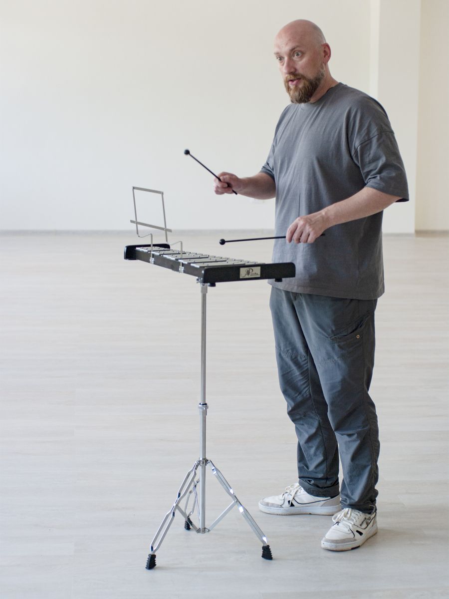 Набор: глокеншпиль, палочки, тренировочный пэд, палочки барабанные, стойка,чехол