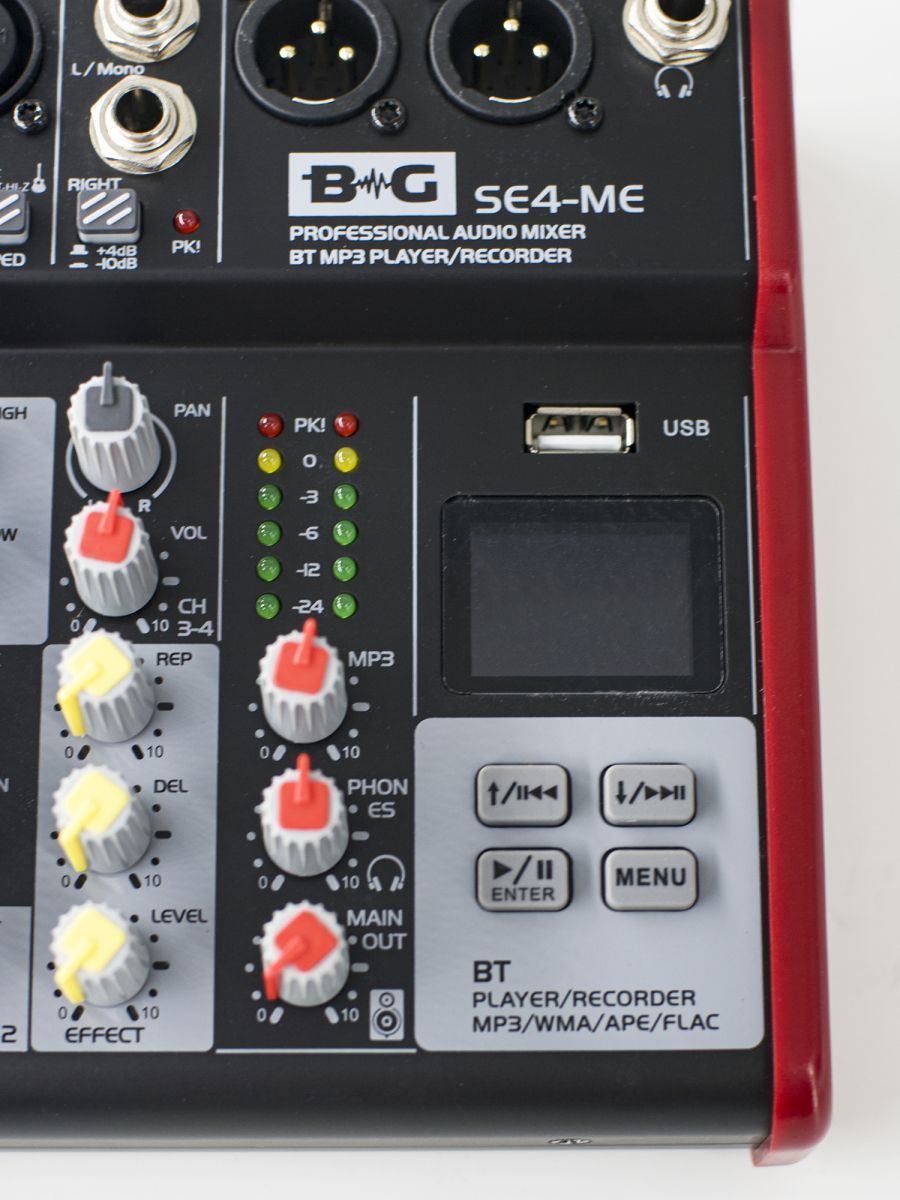 BG SE4-ME Пульт микшерный, 2 моно, 1 стерео, процессор эффектов, USB, MP3 плеер, BT, 2 полосный эквалайзер, фантомное питание