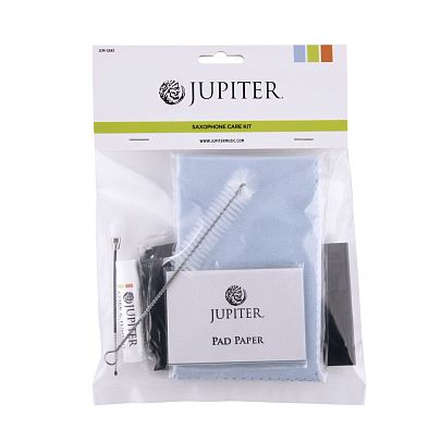 Jupiter JCM-SXK1 Набор для ухода за саксофоном включает: полировальную салфетку, шелковую салфетку для корпуса, ершик для корпуса, ершик для мундштука, смазку для пробки, футляр /держатель для трости, бумагу для чистки клапанов