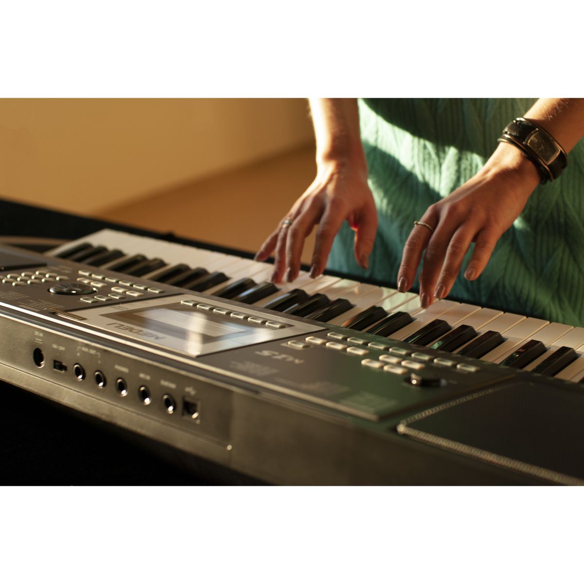 Синтезатор Medeli M15 специально разработан для обучения. Недорогой с отличным «голосом» синтезатор начального уровня наилучшим образом подходит для занятий в домашней обстановке. Динамичная клавиатура реагирует на силу нажатия и воспроизводит звук нужной тональности. 61 клавиша обладает высокой чувствительностью к прикосновению. Это дает возможность начинающему исполнителю научиться не только подбирать ноты, но и чувствовать исполняемую мелодию. Он с первых шагов вырабатывает собственный почерк игры на фортепиано и правильное чувство ритма. Этому способствует и встроенный метроном. 32-голосая полифония обеспечивает достаточно высокий уровень качества воспроизводимого сигнала.