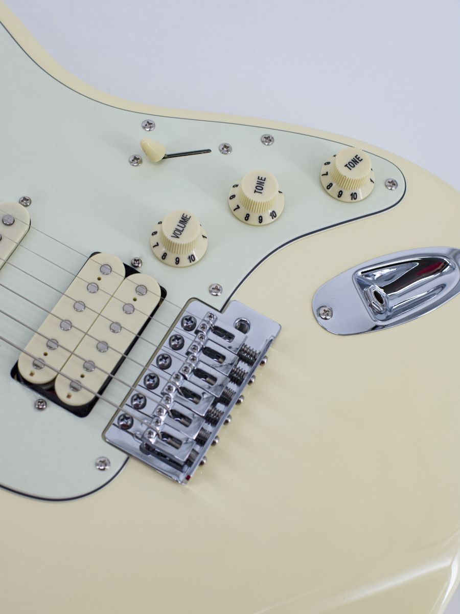 SX SST62+/HSS/VWH Электрогитара, стратокастер, корпус: липа, гриф: отборный канадский клён с палисандровой вставкой, накладка: палисандр, 21 лад, звукосниматели: H-S-S, контроллеры: 1 громкость, 2 тона, 5-позиционный переключатель, цвет: Vintage White